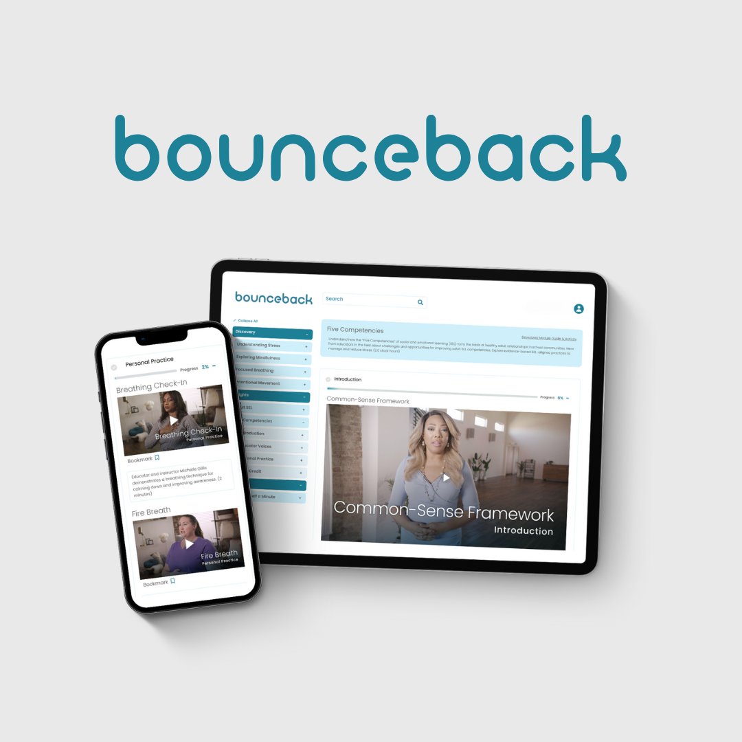 BounceBack is a digital health platform delivering on-demand, wellness-focused professional development for early childhood, Head Start, PK–12, and university pre-service educators.